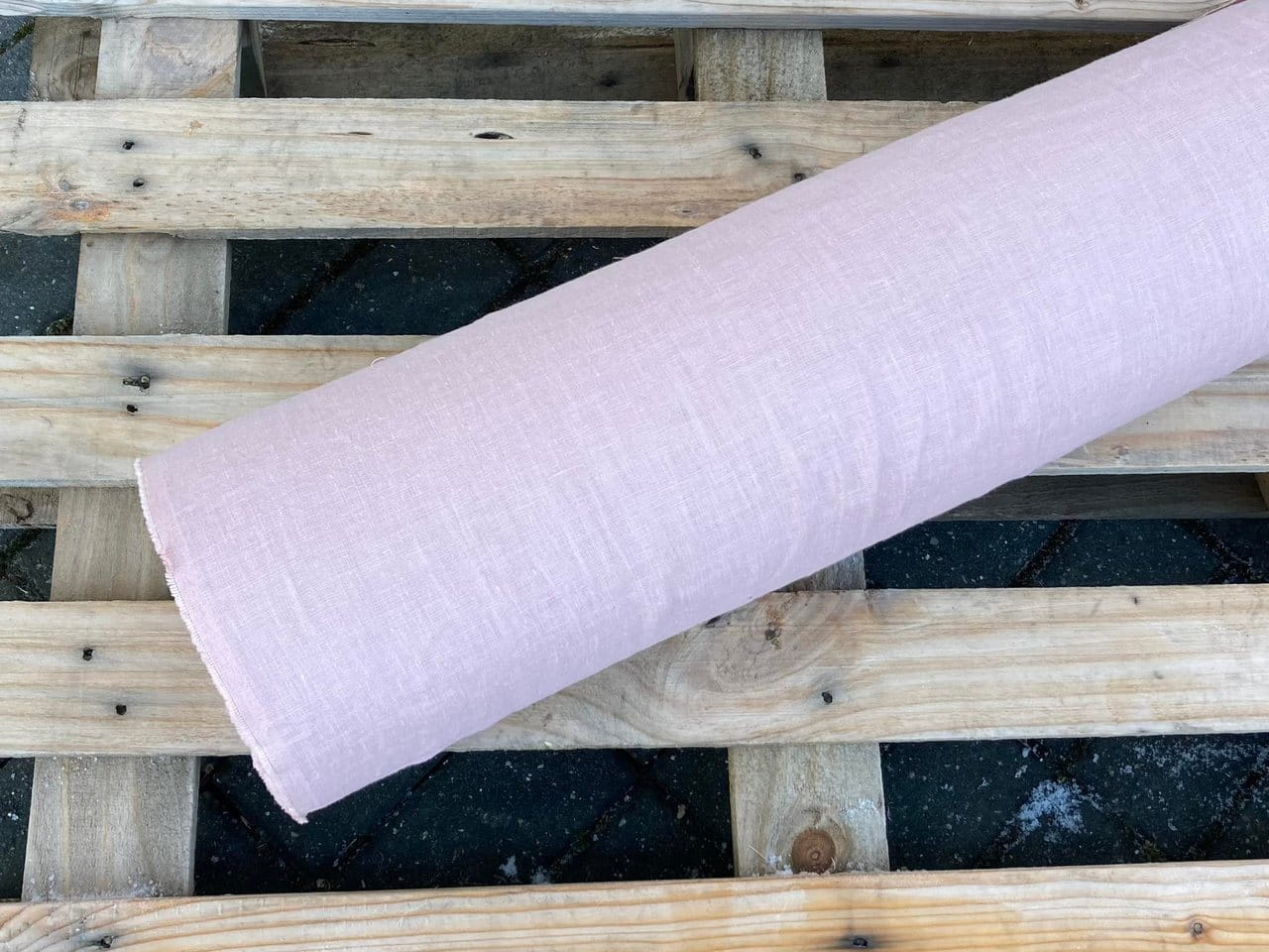 deadstock BLEN len, naturalna tkanina lniana w delikatnym kolorze różowym pudrowym, o grubości 185g/m2.