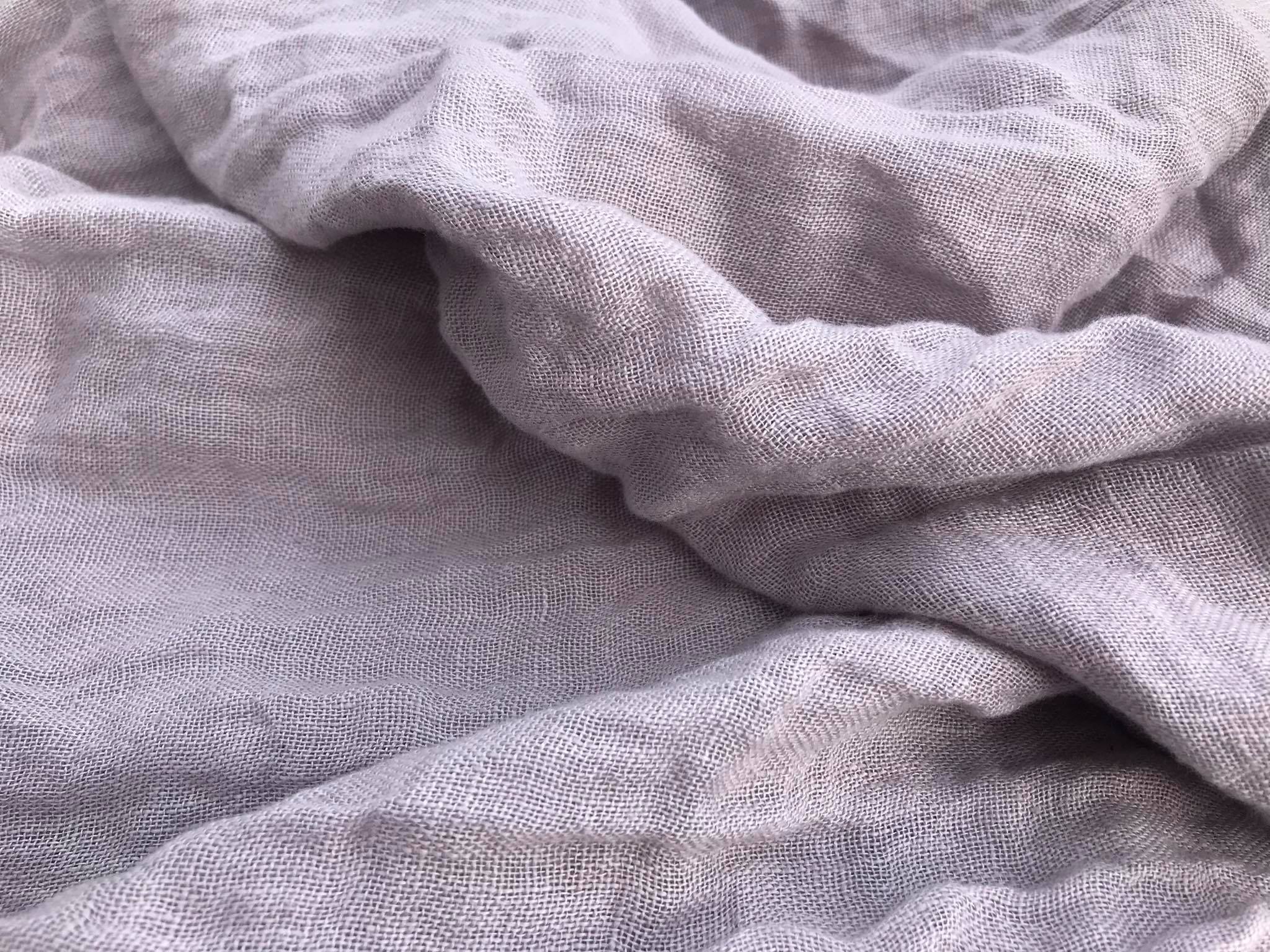 Idealny materiał na szale, otulacze dla dzieci, delikatne zasłonki, nie wymaga prasowania, tak by zachować jego naturalną, pogniecioną strukturę.