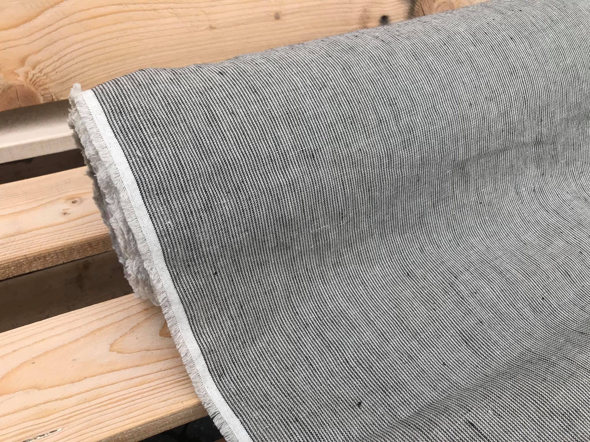 DEADSTOCK Len, naturalna tkanina lniana, prążek czarno beżowy 154 g (kupon o dł 170cm)