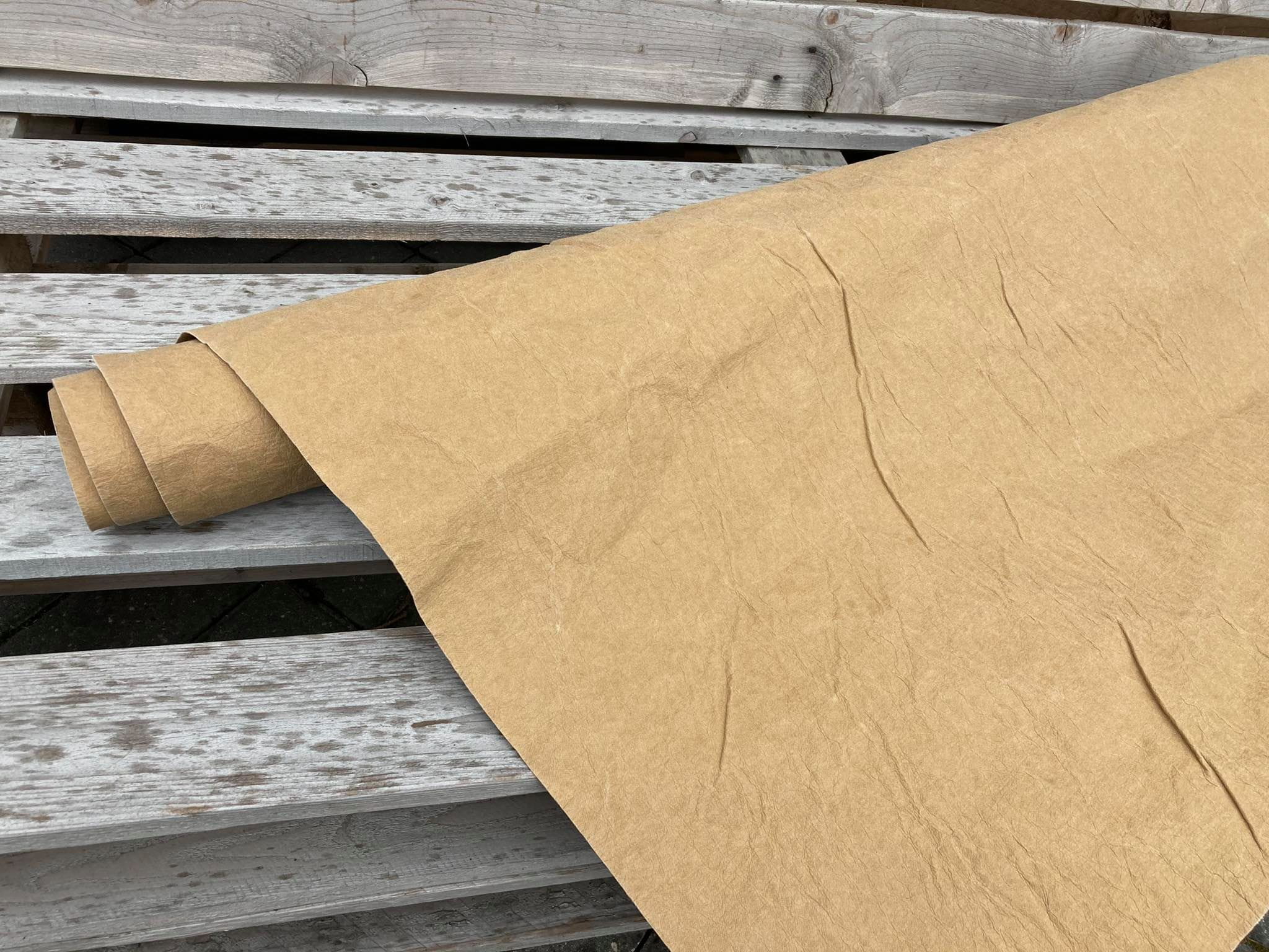 mocno pogniecione w procesie postarzania, trwałe, unikatowe zagniecenia, jedyne w swoim rodzaju, uzyskane w procesie prania i maglowania (widoczne na zdjęciach). Jeśli chcesz żeby Twoja torebka była mocno pognieciona, to jest to idealny papier dla Ciebie.