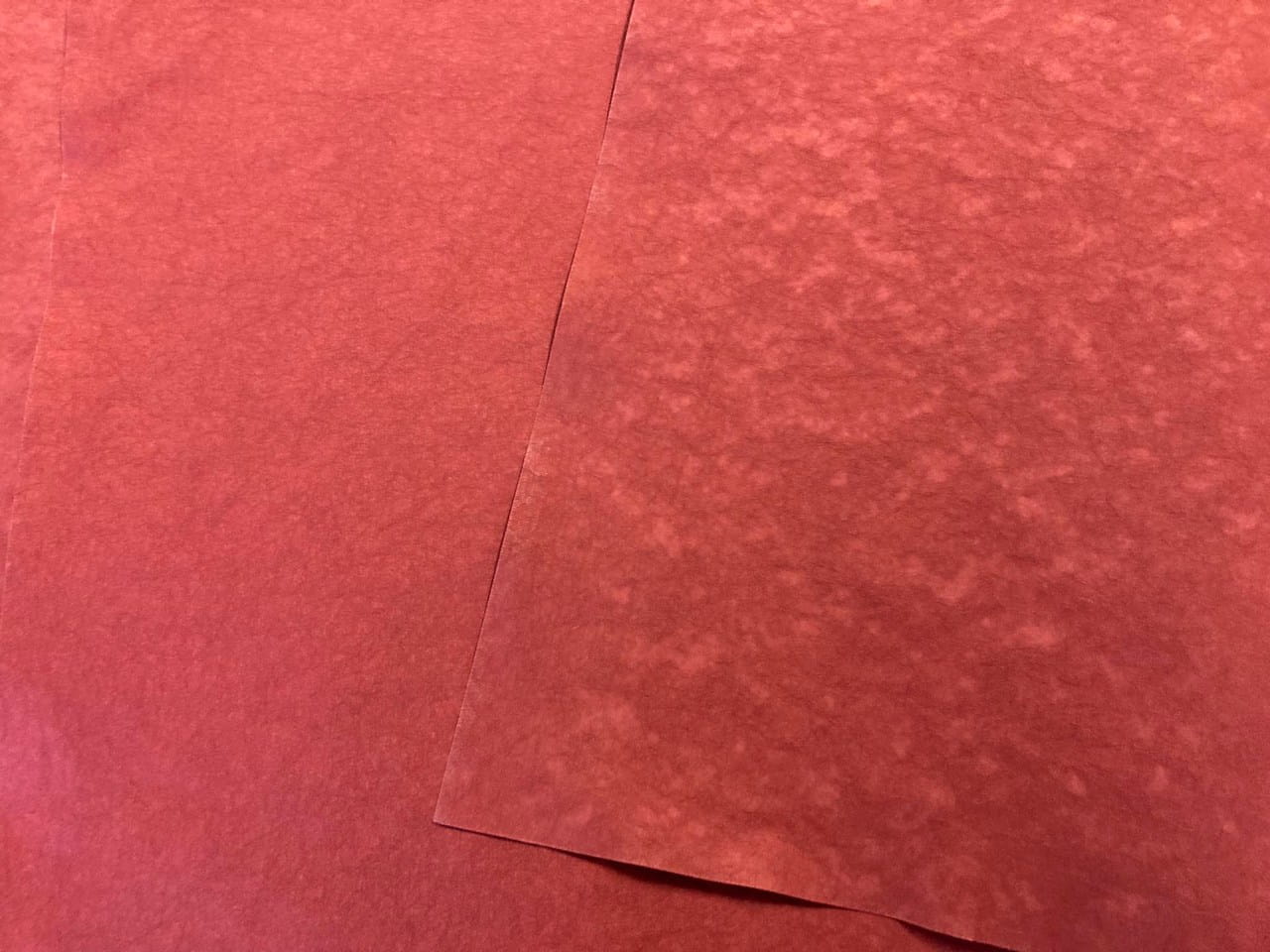 Arkusz postarzanej washpapy - papieru, który został poddany impregnacji lateksem, dzięki czemu można go prać i ponownie używać - w kolorze bordowym.