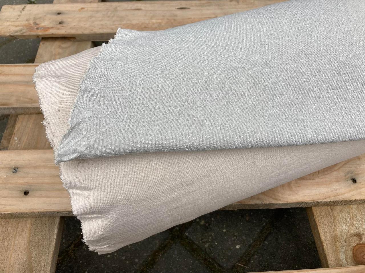 Deadstock, 48% poliester, 40% wiskoza, 6% poliamid, 6% elastan, srebrzysta szarość, szer 144 cm (cena za 0,5m)