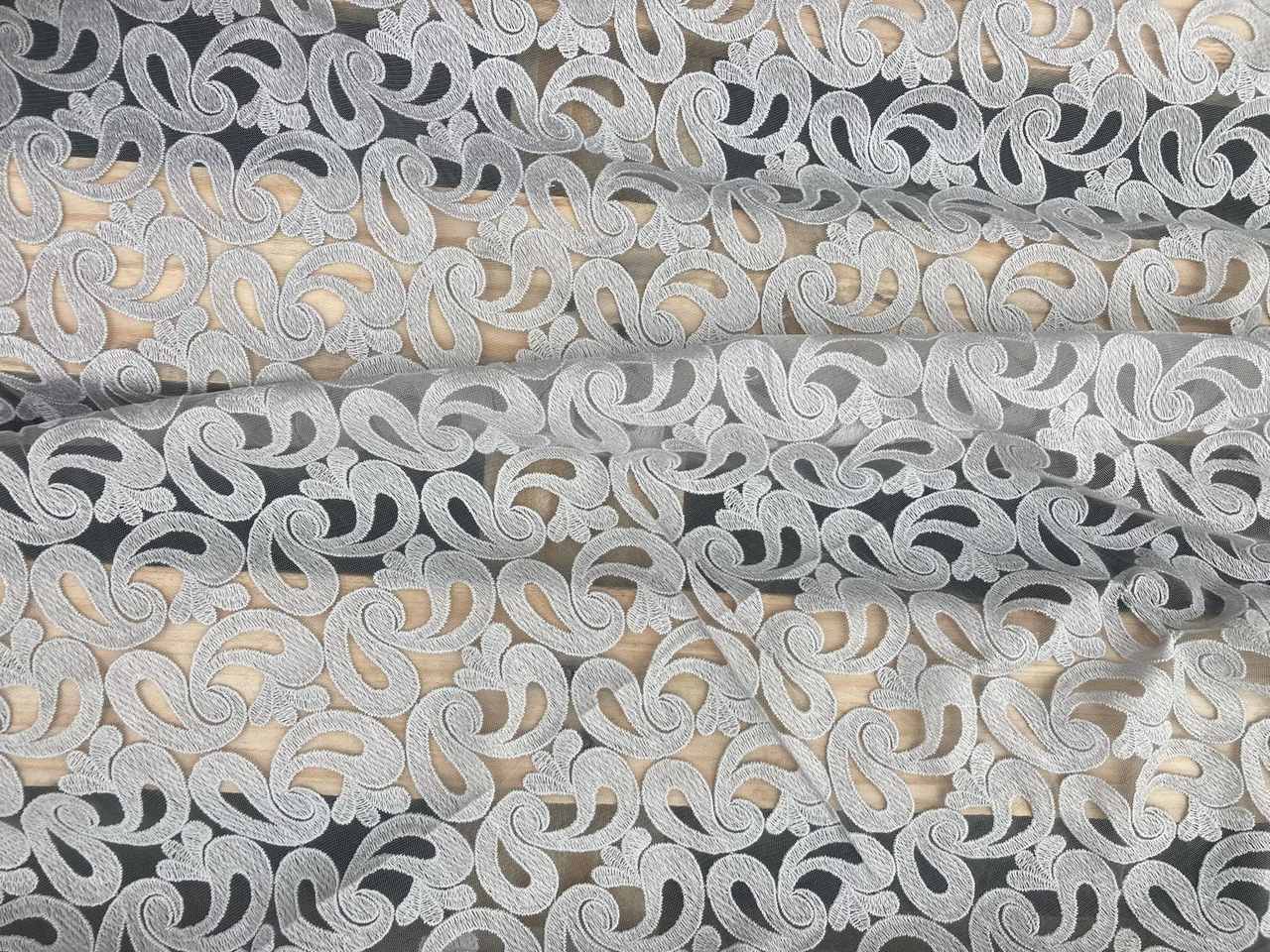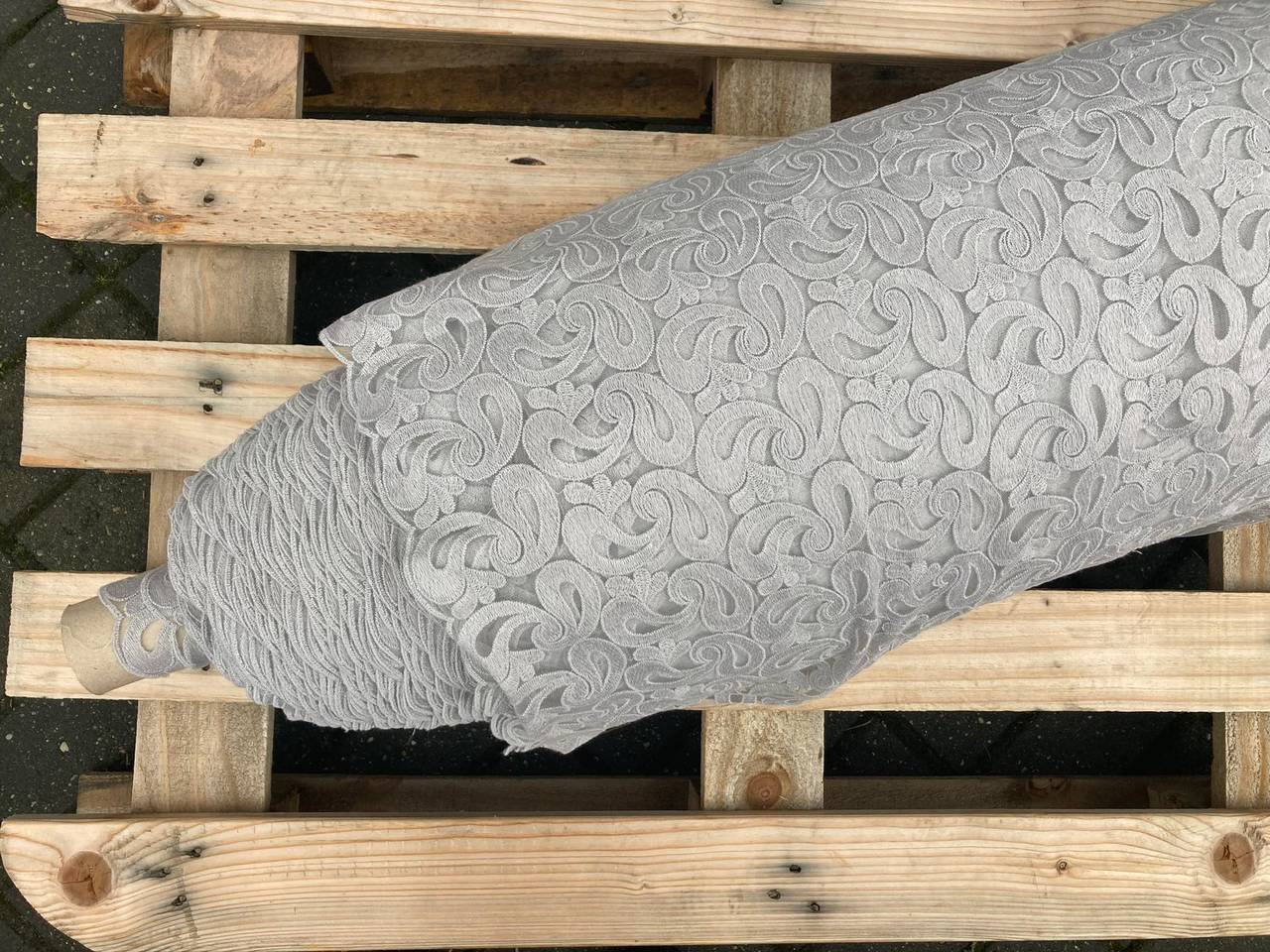 Deadstock, 70% bawełna, 30% nylon, szara koronka szer. 123 cm, tkanina od polskiej marki odzieżowej, końcówka kolekcji