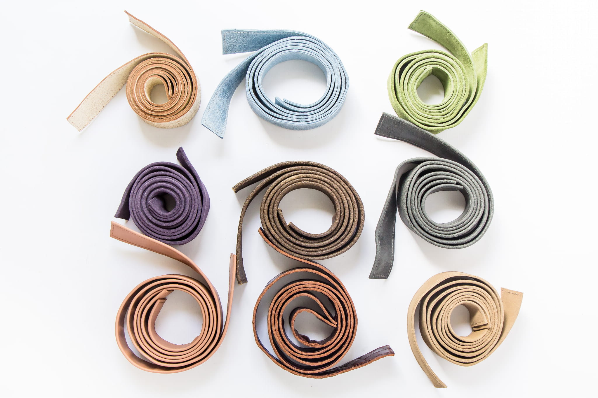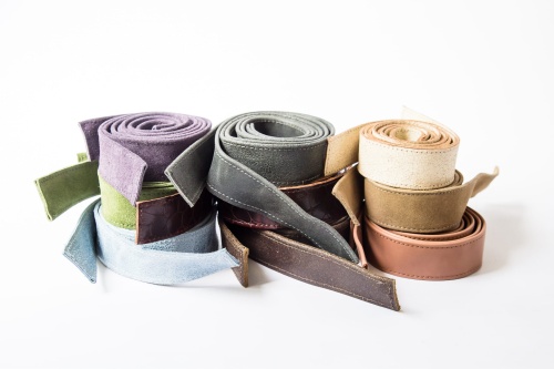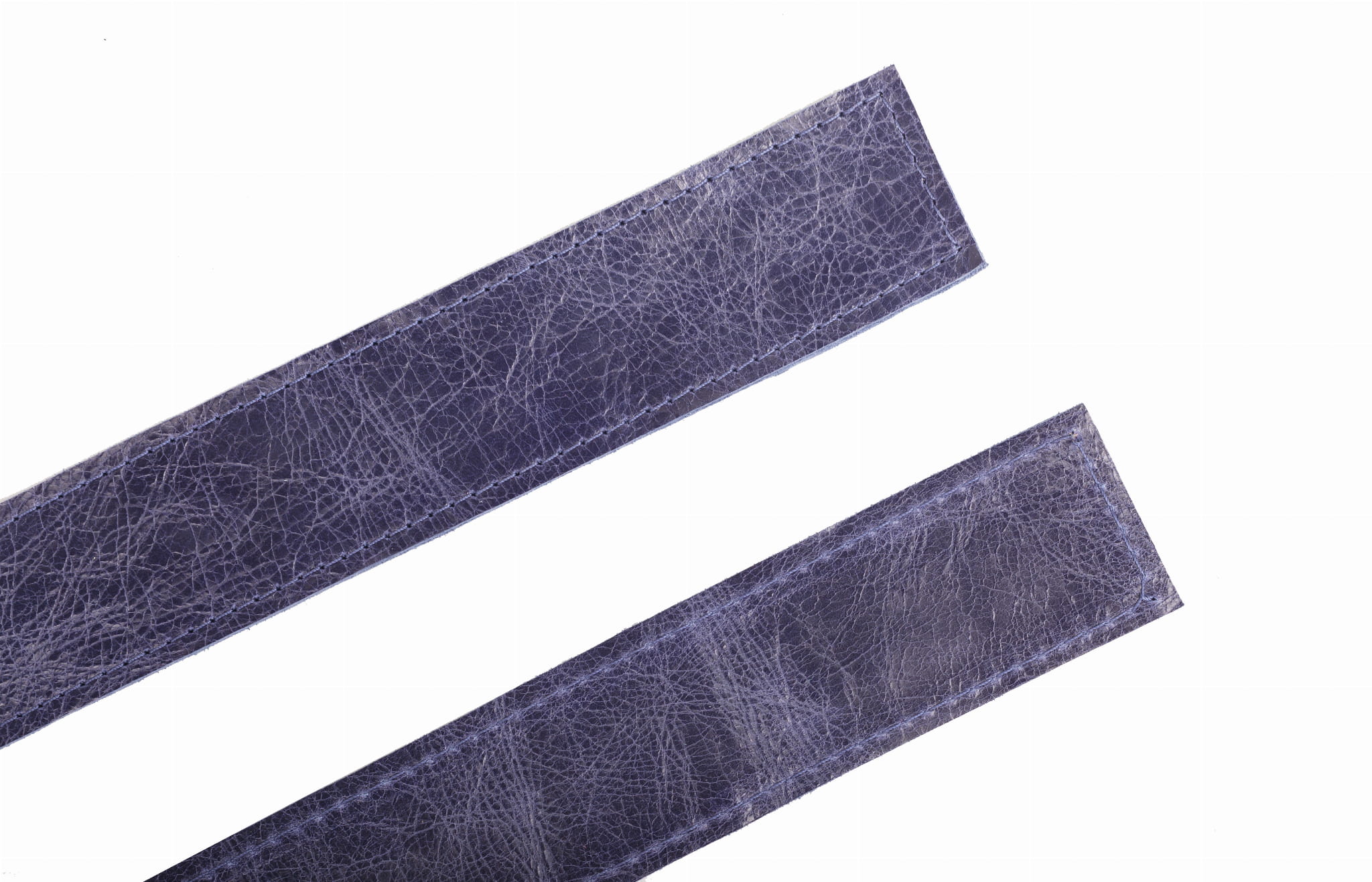 Dwa ręcznie uszyte, skórzane paski, podwójnie złożone, obszyte stebnówką. Skóra jest dość sztywna, a paski delikatnie błyszczą. Uszyte z ekskluzywnej, włoskiej skóry przeznaczonej na torebki. Paski są unikatowe.