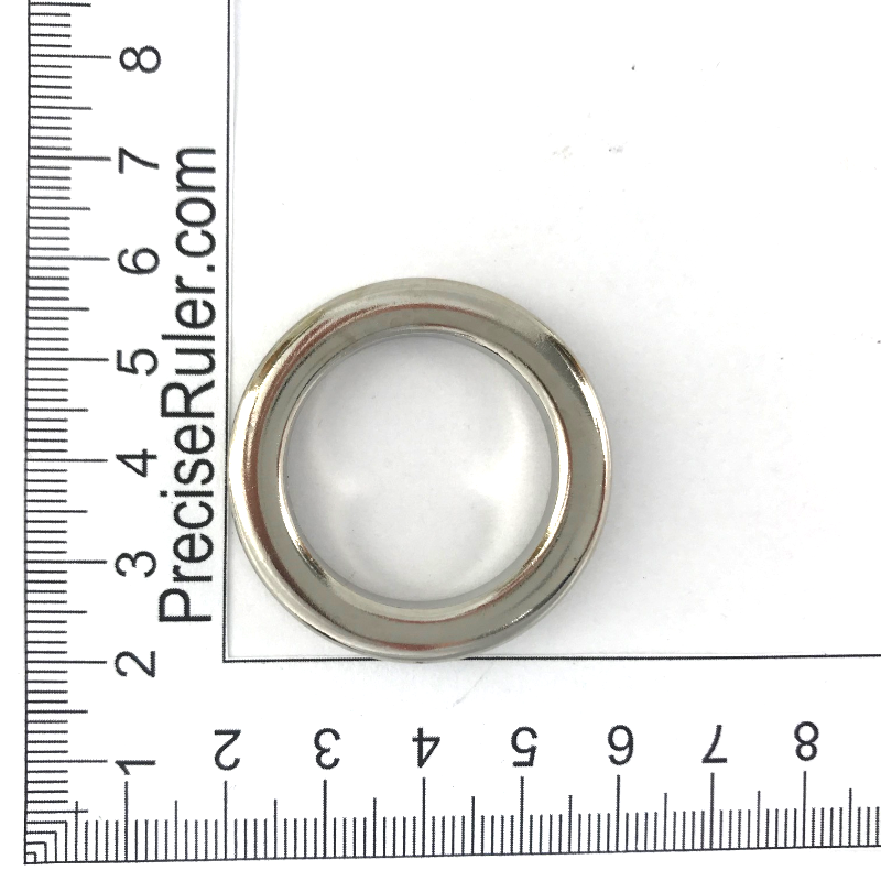 Kółko metalowe, nikiel, z płaskimi, zewnętrznymi rantami, bez łączenia, odlane w całości, przeznaczone do mocowania taśm, pasków i karabińczyków. Wykorzystywane w wyrobach galanteryjnych, jako akcesoria kaletnicze i krawieckie. Przeznaczone do taśmy nośnej o szerokości 23 mm.