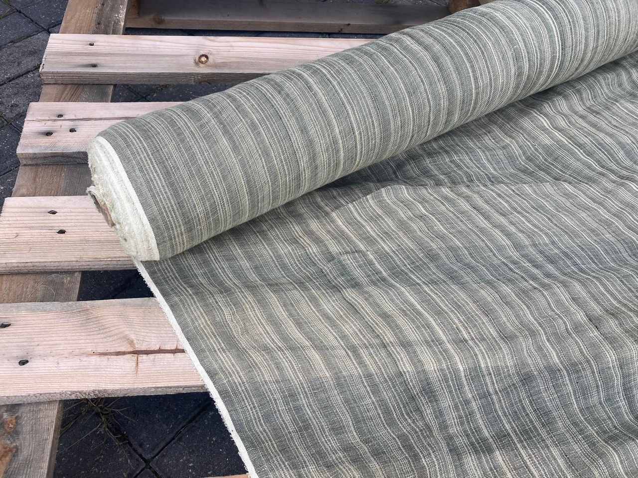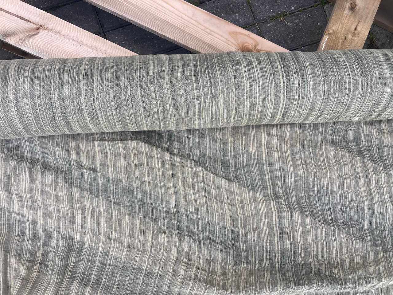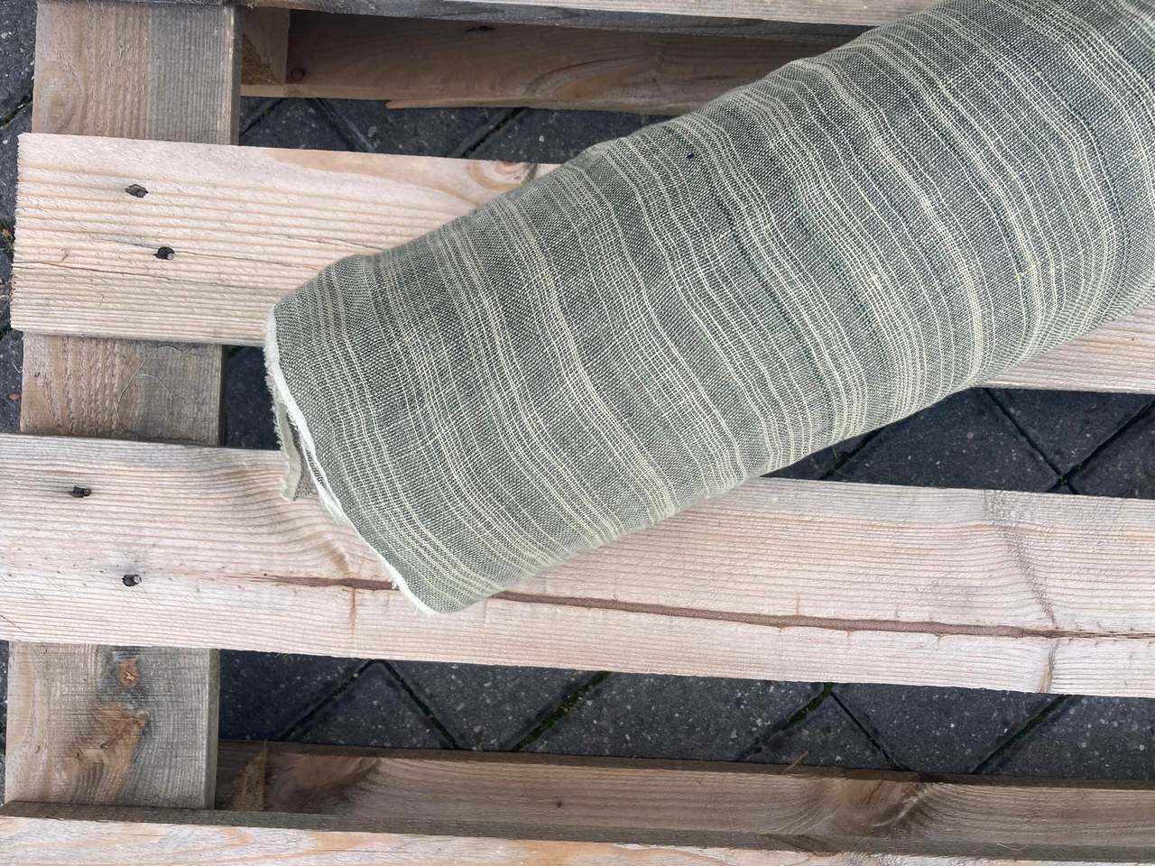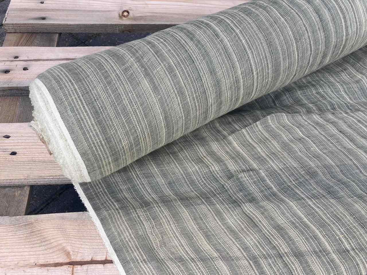 Naturalna tkanina lniana, ażurowa, jasny zielony + kremowa niteczka, 110g/m2