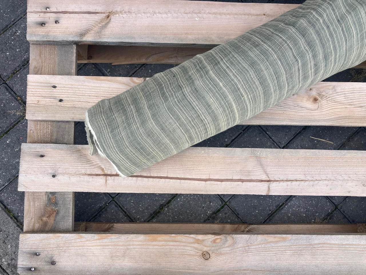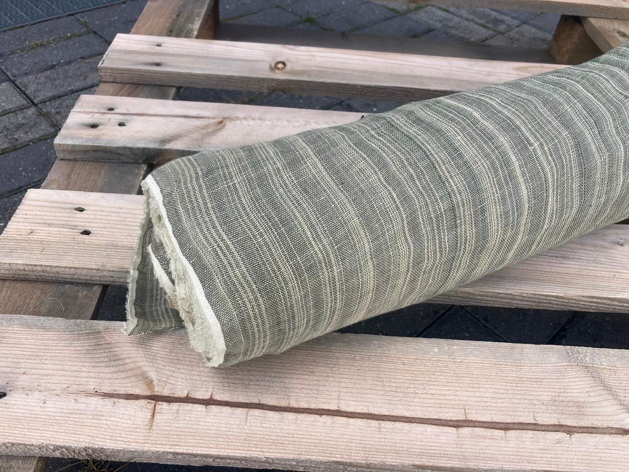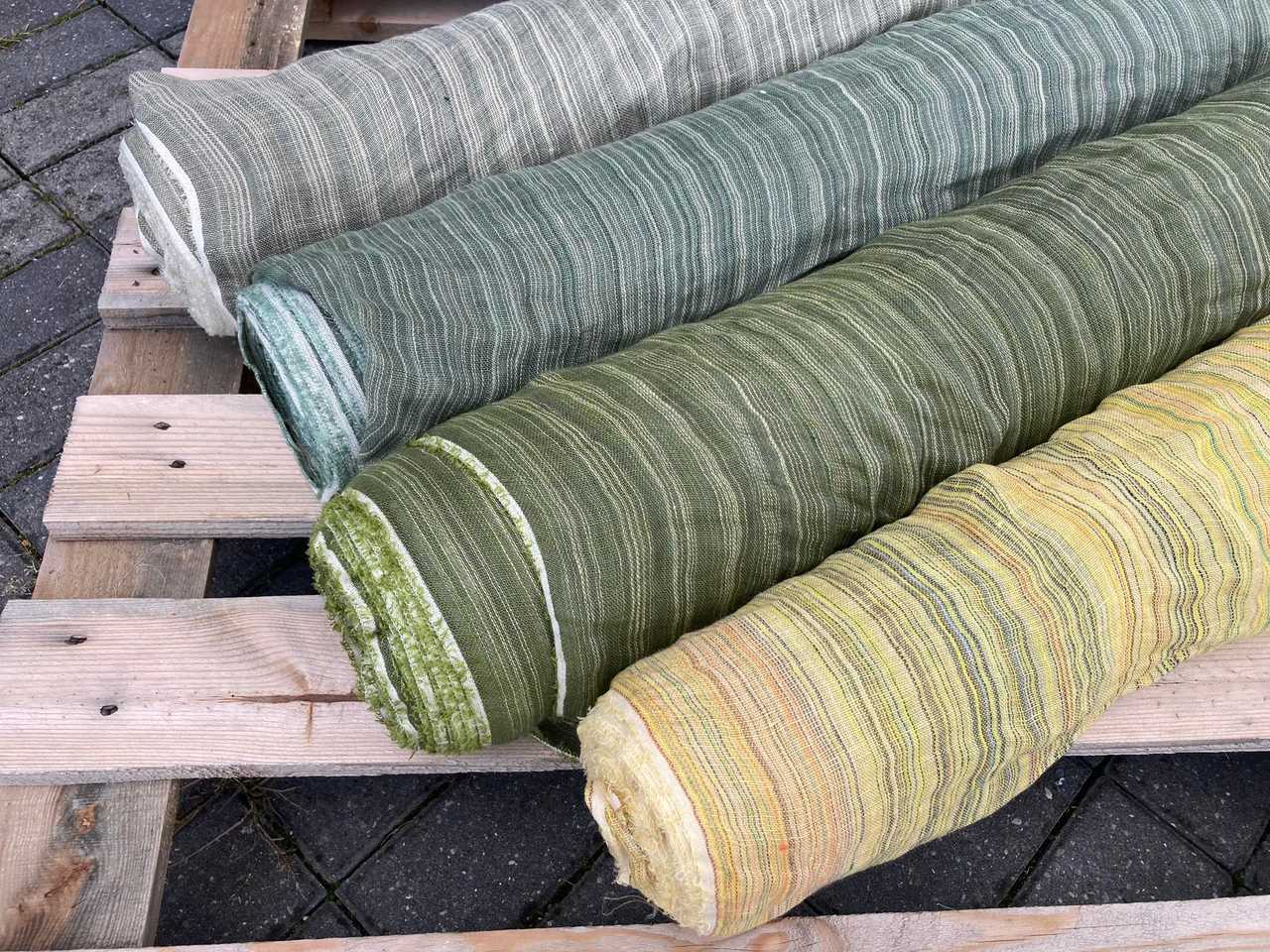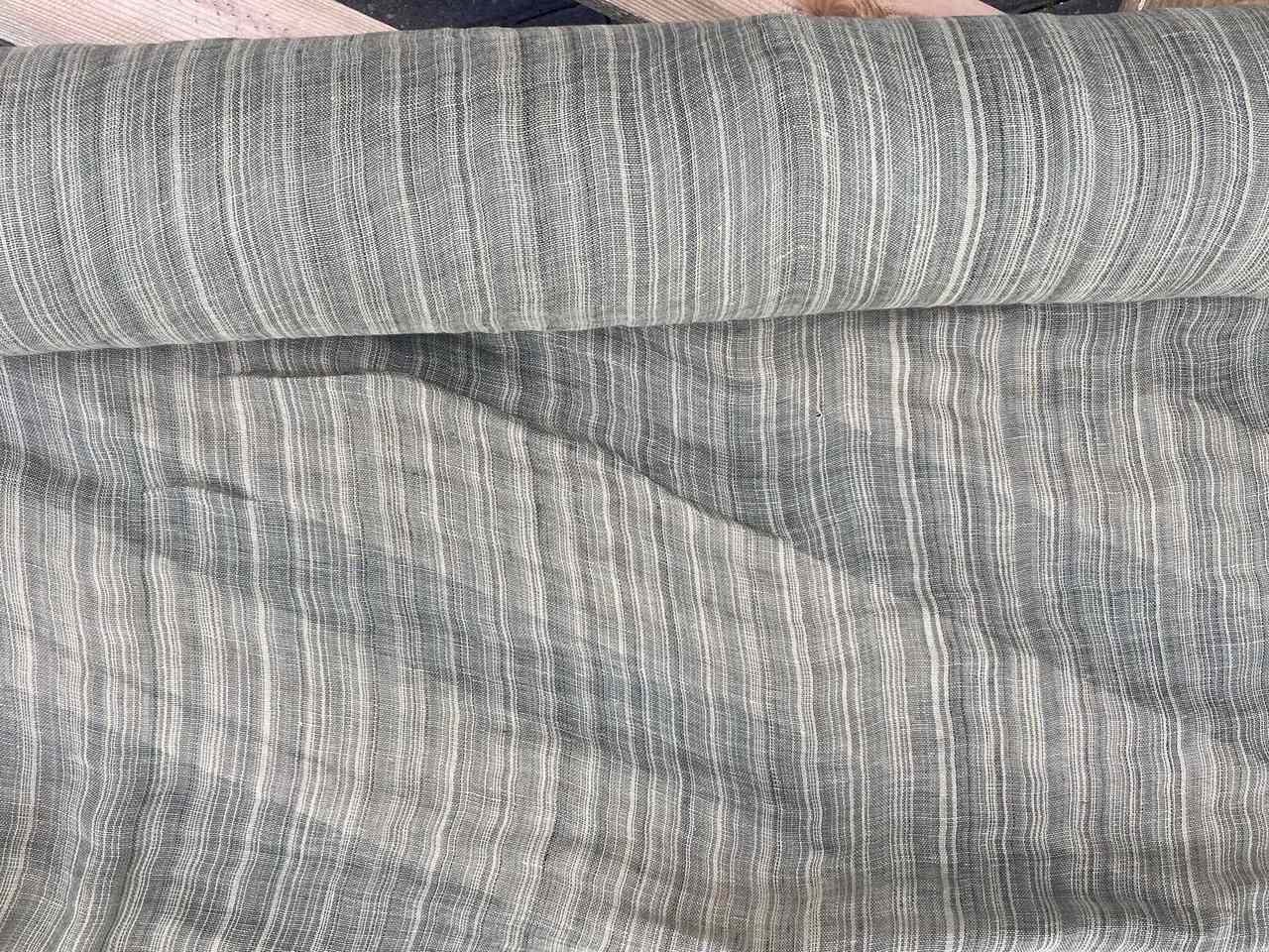 Naturalna tkanina lniana, ażurowa, jasny zielony + kremowa niteczka, 110g/m2