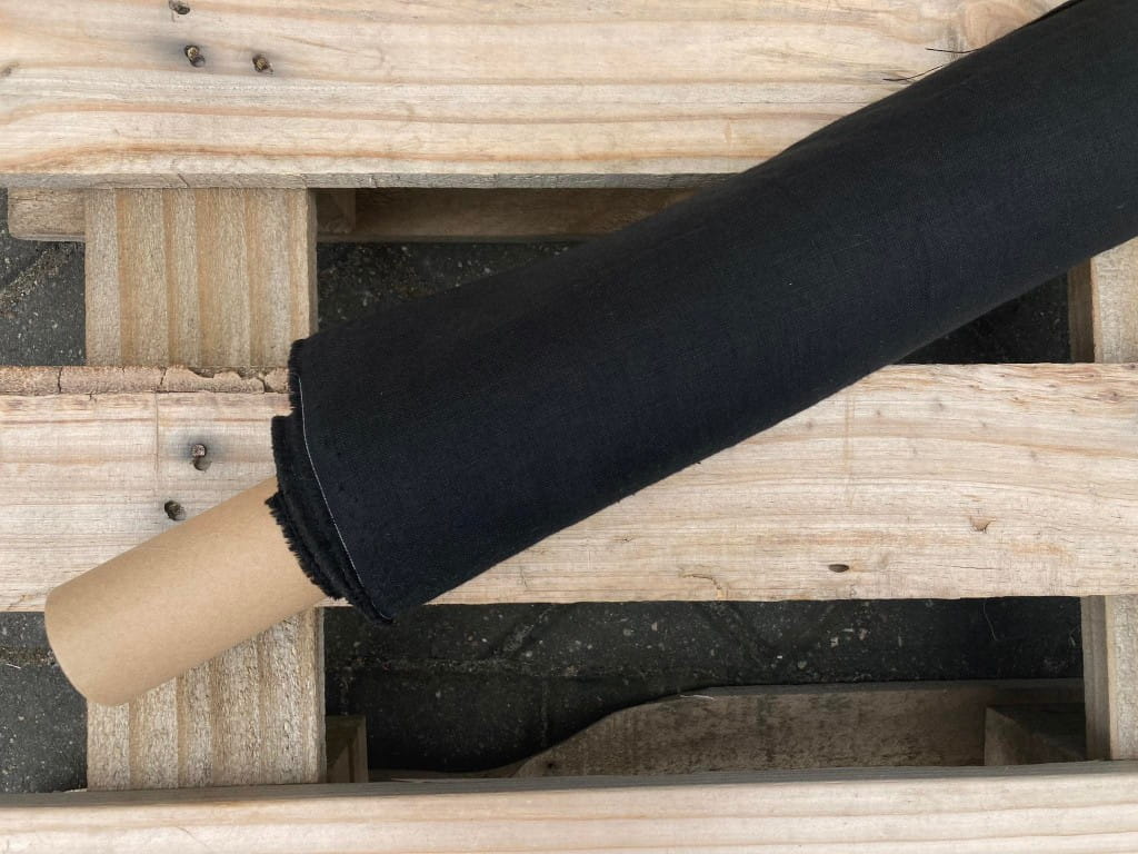 Naturalna tkanina lniana w kolorze czarnym, o gramaturze 155g/m2.