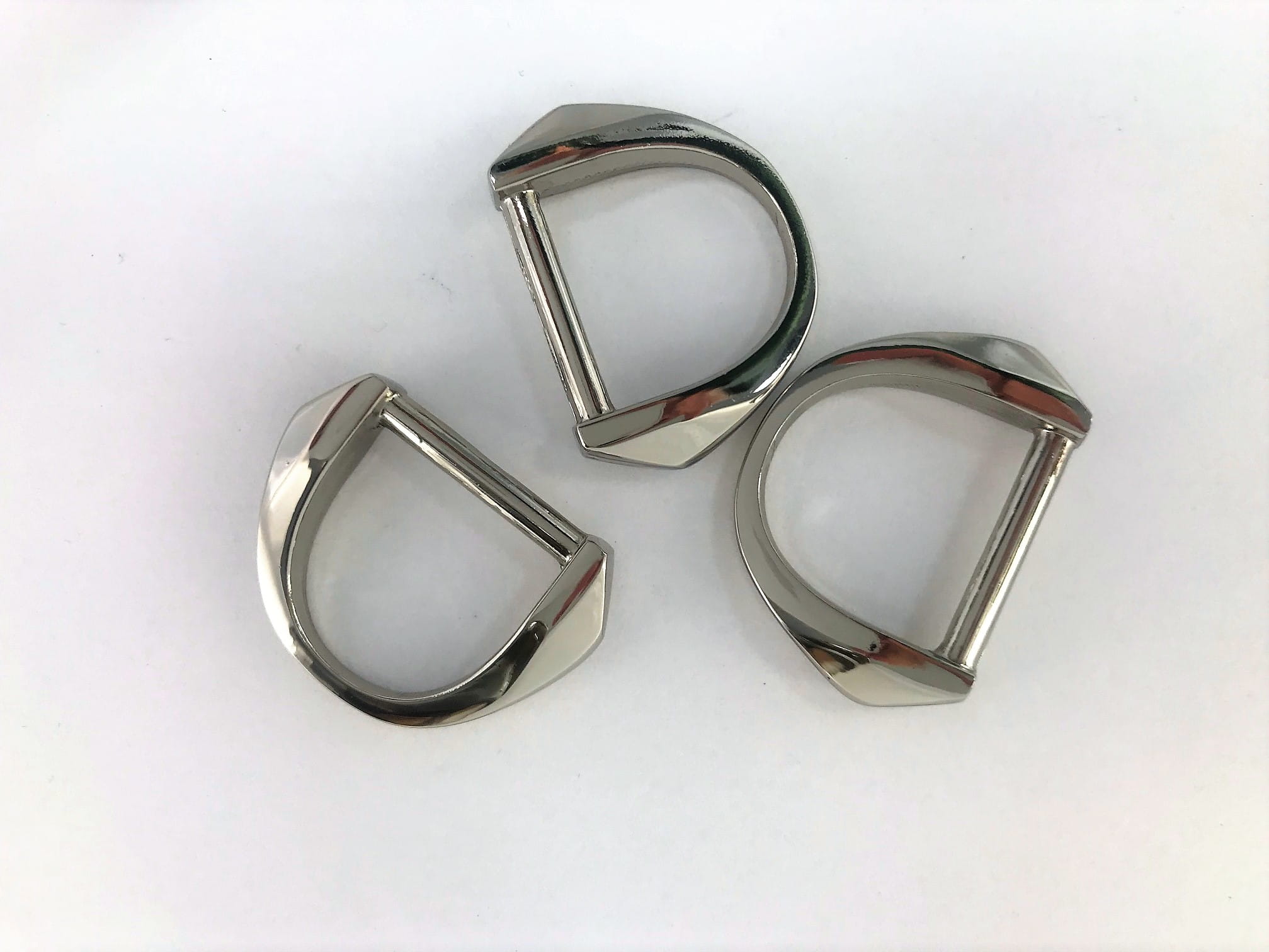 Półkółko metalowe, w kolorze niklu, do taśm i pasków w torbach lub torebkach. Wykorzystywane w wyrobach galanteryjnych, jako akcesoria kaletnicze i krawieckie. Przeznaczone do taśmy nośnej o szerokości 20 mm.