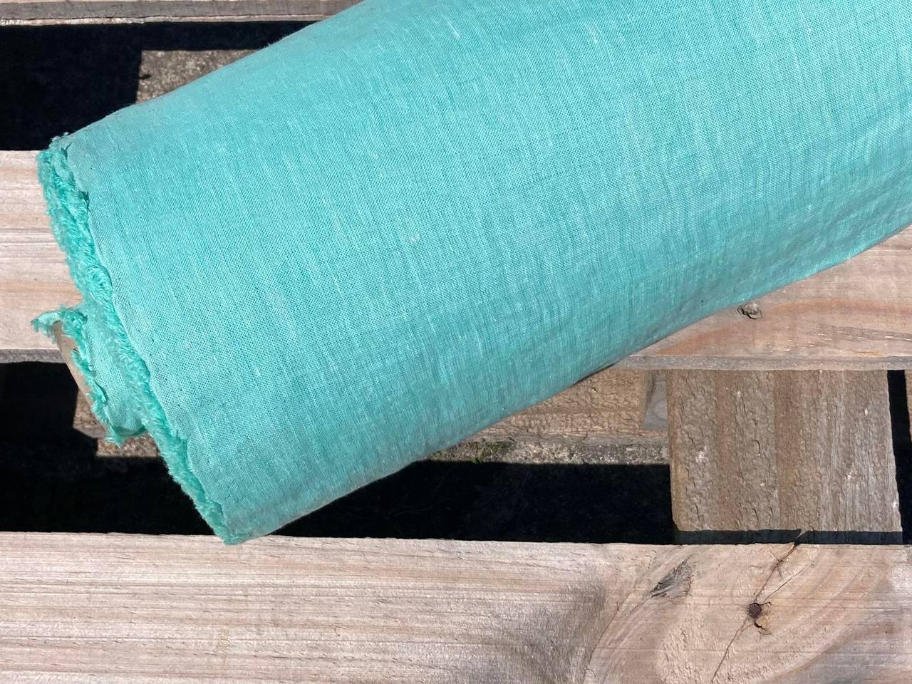KONOPKA IWAN - tkanina 100% z konopi w kolorze seledynowym. Zmiękczana, delikatna, zwiewna, bardzo przyjemna w dotyku, idealna na lato, o gramaturze 121g. Przypomina cienki len litewski 135g. Delikatnie melanżowy. Raczej wymaga podszewki, szczególnie kolor biały i ecru, gdyż delikatnie prześwituje.