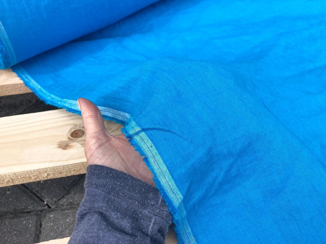 tkanina lniana, litewski len 100% LENAJ, turkus, 205g (cena za 0,5m)